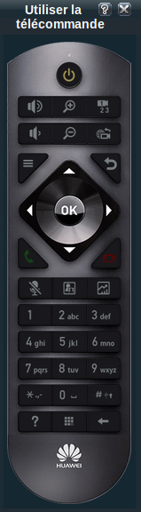 • Appuyez sur cette touche et un pavé distant apparait en incrustation sur votre écran. Vous pouvez maintenant composer les codes nécessaires à la salle de conférence.
